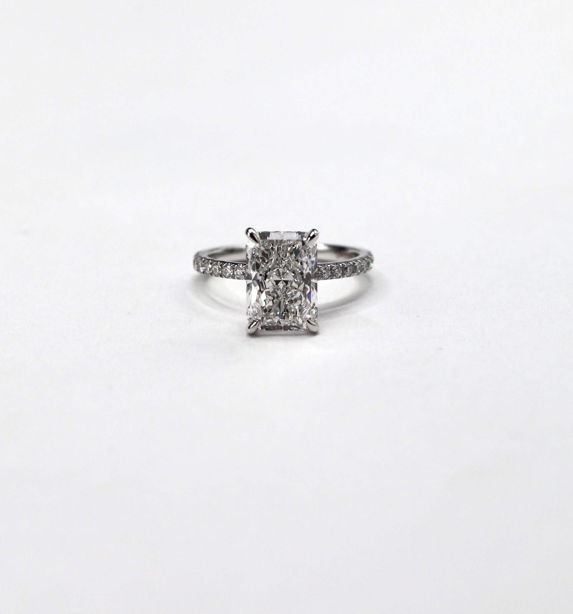 A captivating diamond ring, featuring a 4.09ct D VVS2 lab diamond, set in solid 14k white gold.